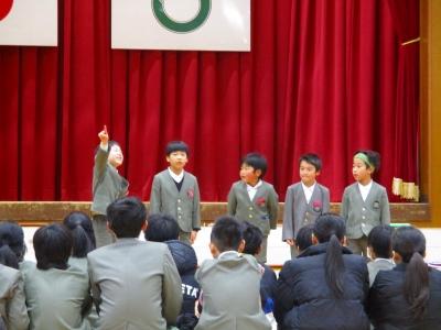 3年 6年生大感謝祭 投稿日時 : 2024/02/21 教職員 2月21日(水)6年生大感謝祭が行われました。 3年生の出し物は「たからもの」がテーマでした。国語科の授業で「6年生大感謝祭で何をしたいか」を話し合ったなかで出てきた児童の思いをすべて詰め込んだ出し物でした。お互い助け合いながら出し物をやり切り、6年生に感謝の気持ちを伝えることができたと思います。児童の振り返りにも諦めずにやり切ったことや達成感を感じている様子が書かれていました。 また、出し物とは別に6年生の入退場で使用するアーチを作りました。他の児童の歓声や6年生の笑顔を見て、3年生も素敵な笑顔が見られました。 Tweet