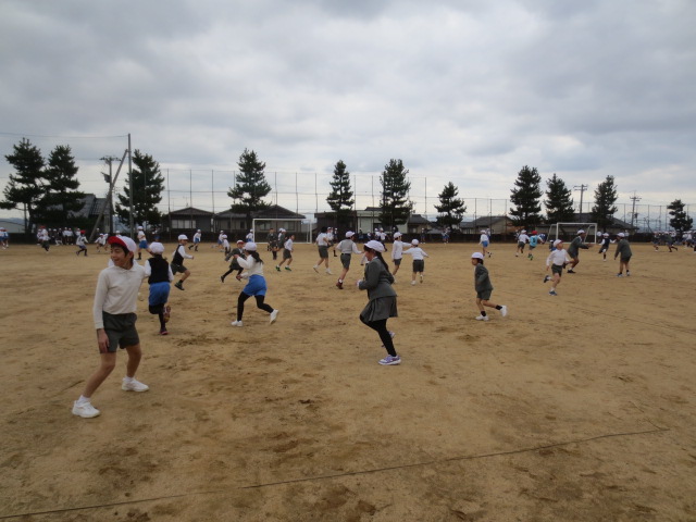 こおり鬼 投稿日時 : 2015/01/16 教職員 体育委員会のキラキラ活動として、1月16日(金)の昼休みに、「こおり鬼」をしました。2学期に計画をしていたのですが、天候のが悪く、順延を繰り返し、16日にようやく実施することができました。1~6年生まで300人近い児童が参加し、鬼となった体育委員や先生方から逃げ回っていました。運動不足になりがちなこの時期に、みんなで体を動かせる貴重な時間となりました。体育委員会のみなさん、楽しい時間を本当にありがとうございました。 Tweet