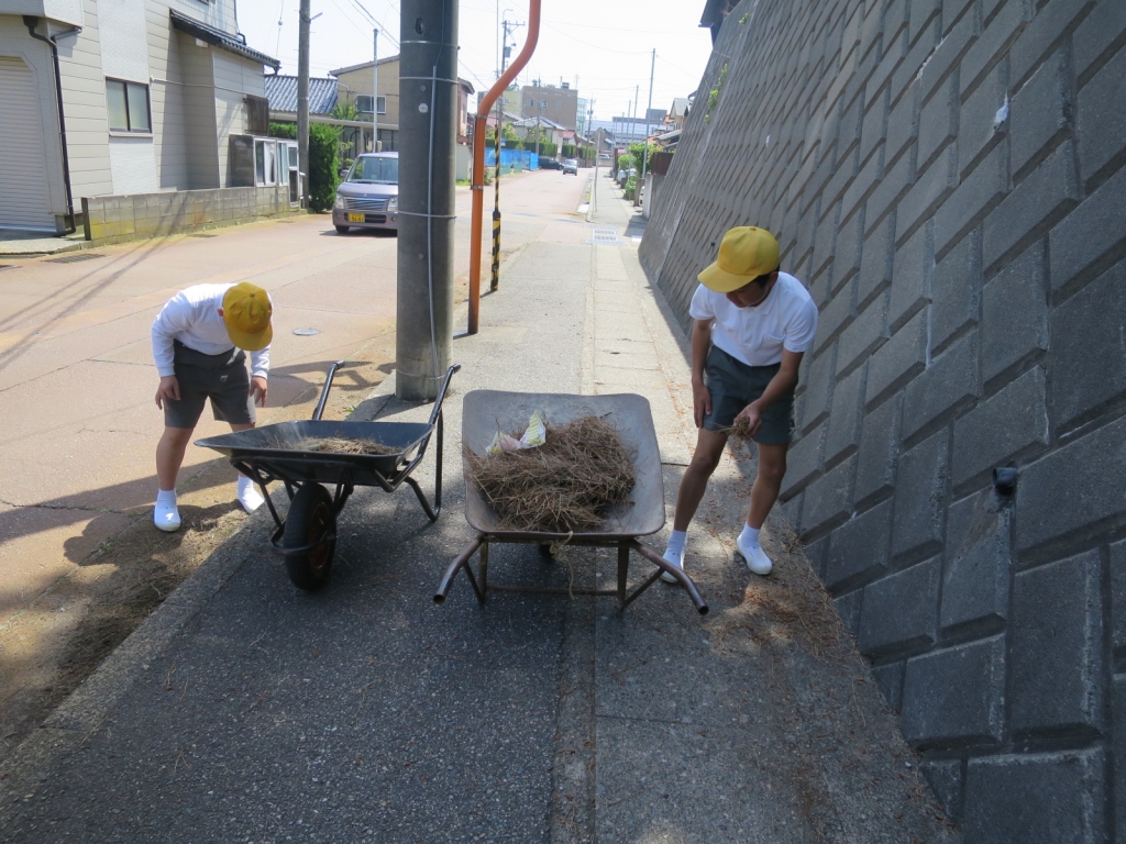 汗だくになった 外掃除 投稿日時 : 2018/05/15 教職員 今日の昼休みは、全校で外掃除をしました。運動場に学校裏の花壇周辺、玄関前の駐車場・・・それぞれの場所で一所懸命取り組みました。学校ブロック塀下の通学路も松の葉でいっぱいになっていたので、6年生の有志が集まってくれたくさんの落ち葉をかき集めてくれました。一輪車6台があっという間に落ち葉でいっぱいに 協力し、丁寧に集めていましたPTA費で購入したカートつきの落ち葉入れは大活躍! その場で作業していた校長先生に、「松の葉で痛くないですか」と気遣う優しい声かけも聞かれました Tweet