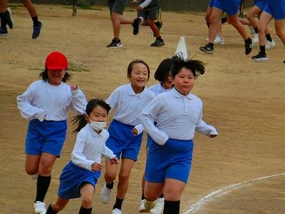 長休みに全校児童が運動場に集合し、音楽と共に軽快に走り出した子ども達。かけ足運動は10月28日まで天気の良い日に行います。