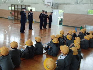 1年 交通安全教室 投稿日時 : 2019/04/25 教職員 1時間目・2時間目に津幡警察署の警察官が来校し、春の交通安全教室を行っていただきました。 初めは教室で警察官のお話を聞いたり、DVDを見たりしました。「道路を渡るときは、信号をよく見て止まり、左右をしっかり確認してから渡る。」ということを確認できました。 お話が終わってからは、いよいよ実地指導。雨が降っていたので、体育館で行いました。子どもたちは、警察官の指示に従いながら正しく横断歩道を渡ったり、道を歩いたりしていました。これからは今日のことを思い出しながら、安全に通学できそうですね。 Tweet