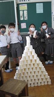 3学年 つなげて ならべて 投稿日時 : 2021/04/15 教職員 3年生では、図画工作科で紙コップを使い、造形遊びを行いました。紙コップの形や場所を活かして、思い思いに形を作って遊びました。形を作るだけでなく、形から遊びを考える児童もいてとても楽しい活動になりました。 Tweet