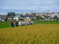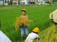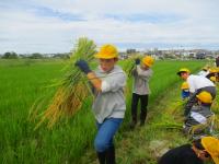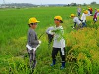 5年 稲刈り 投稿日時 : 2023/09/25 教職員 5月に田植えをした田んぼ。 秋の稲穂が実りの秋を迎え、黄金の絨毯が広がっています。 秋晴れの下、鎌をもって稲刈りを行いました。 一株一株丁寧に刈って、束ねて運ぶ。 単純作業で大変だったけど、少しぬかるんでいたので泥まみれになりながらも友達と声をかけあって、1時間半がんばりました。 お世話していただいた方々、ありがとうございました。 Tweet