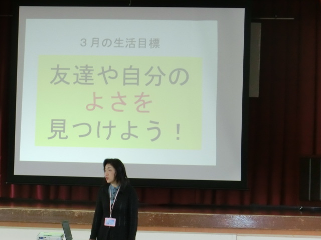 次に今月の生活目標について、生徒指導の先生と、企画委員の5年生の話がありました。
