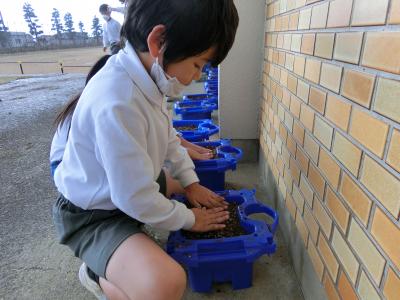 1年 チューリップの球根を植えました 投稿日時 : 2022/11/08 教職員 生活科の時間にあさがおを育てていた鉢を再利用して、チューリップの球根を植えました。春になると、それぞれの花が咲く予定です。 どのくらいの深さで植えたらきれいなお花が元気に咲いてくれるのか、球根はどのようにして植えるのかなど、先生の説明をしっかり聞いてから、みんなでていねいに植えました。 残念ながら植えている最中ににわか雨が降ってきてしまいましたが、球根にとっては、恵みの雨になったようです。 Tweet