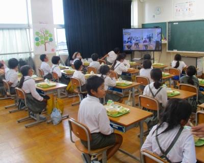 3年 猿払村立浅茅野小学校とのオンライン給食 投稿日時 : 2023/10/17 教職員 本日、給食のメニューが内灘町の友好都市である「猿払村」とのコラボメニューでした。そこで給食時間に猿払村立浅茅野小学校の5年生とZOOMでつながり、オンライン給食を行いました。 お互いの地域の名産品が給食で使用され、それぞれのよさを味わっていました。短い時間でしたが、お互いに質問し合う時間もとることができ、児童にとって有意義な時間になったと思います。 Tweet