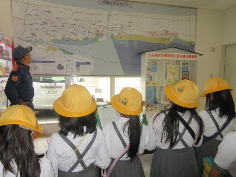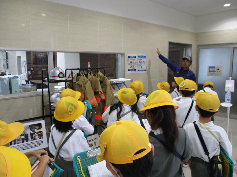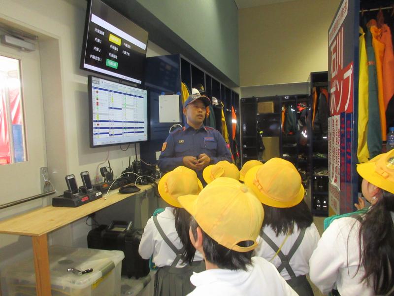 社会科「火事からくらしを守る」の学習で内灘町消防本部の見学をしました。課題は、<消防士さんは、いつでも、どこでも、はやく、安全に、消火や人助け、防火するためにどんな工夫をしているか>でした。消防本部の方からたくさん教えていただき、また実際に見たり、触ったりすることで、多くの疑問が解決し、みんなで考えた予想もしっかりと確かめることができました。消防本部の皆様、お忙しい中ありがとうございました。