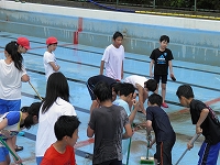 プール掃除 投稿日時 : 2014/06/09 教職員 6月6日(金)の5・6時間目、6年生によるプール掃除が行われました。 ゴミやヘドロで汚れていたプールを、たわしやデッキブラシを使ってピカピカに磨きました。 自分たちだけでなく、1年生~5年生にも気持ちよく使ってもらえるよう頑張りました。 プールに入るのが楽しみになりました。