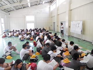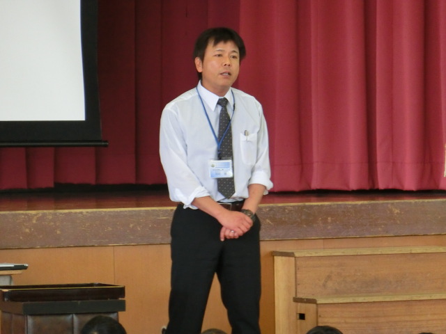 その後、生徒指導部の先生から5月の生活目標「時間を守ろう」について話がありました。「始業に5分遅れると1日6時間で