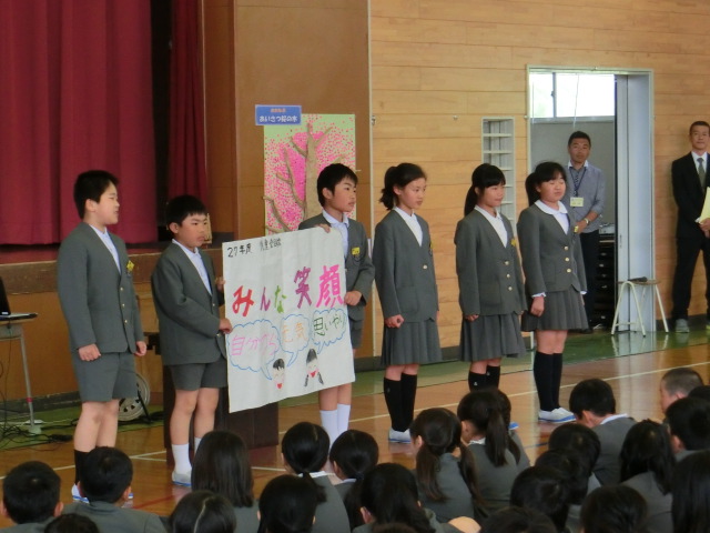 今年も全校みんなが仲良く、笑顔で生活できるように6年生のみなさんよろしく