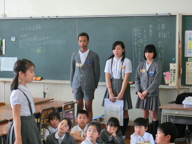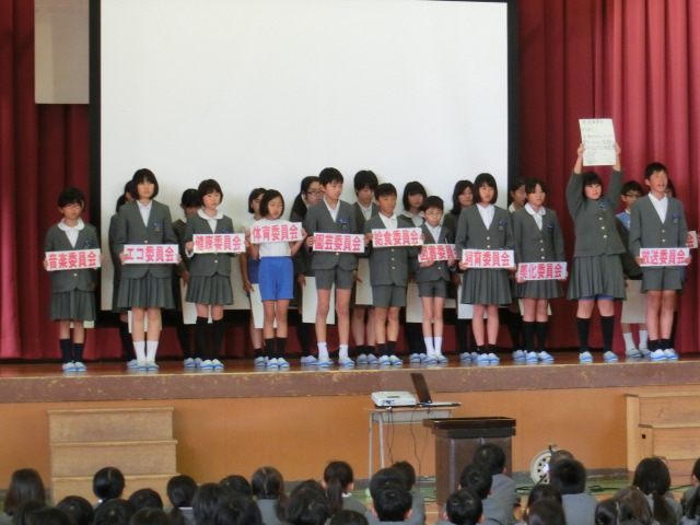 児童集会では今年度の児童会目標の紹介、委員長・副委員長による各委員会のめあての紹介、学級代表による各クラスの