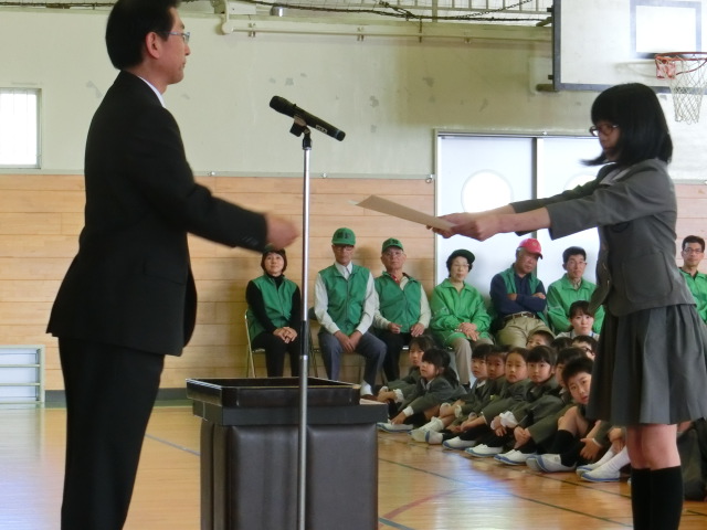 校長先生のお話です。 ボランティアさんに自 児童代表のお礼の言葉