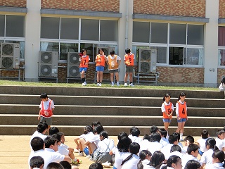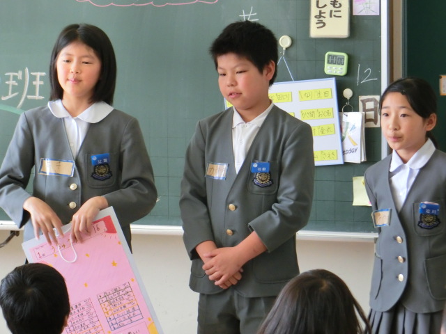 次にエコ委員会の発表がありました。全校にエコの大切さをしっかりよびかけることができました。