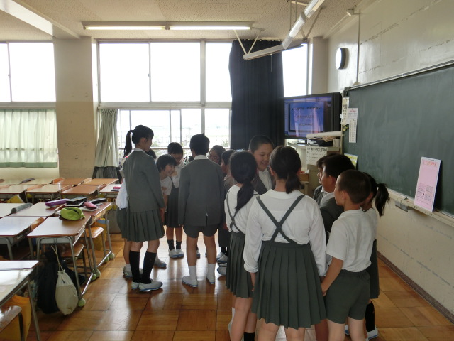 5時間目にプレイルームに集まり、先生から調査の目的や方法について説明