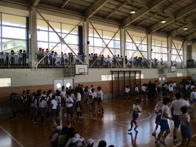 に跳ぶことができていました。体育館のギャラリーからは、2・4・6年