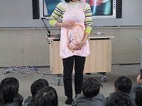 2月9日(火)の3時間目に、多目的室で2年生みんなが集まり、助産師さんのお話を聞きました。