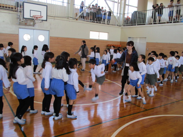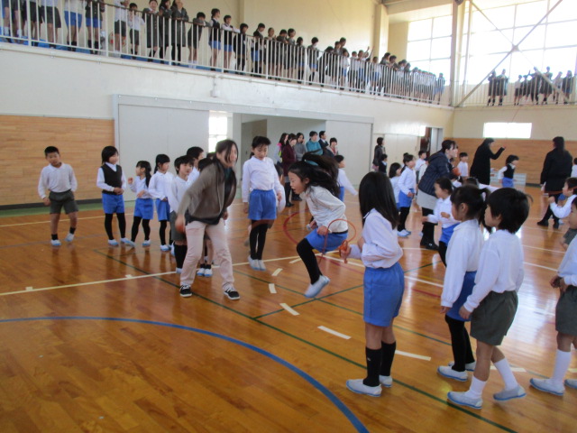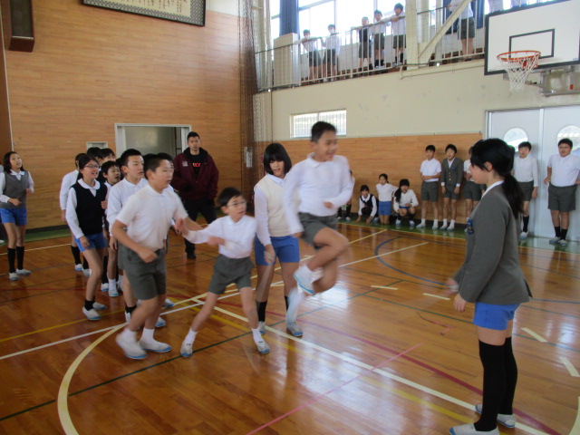 に跳ぶことができていました。体育館のギャラリーからは、2・4・6年