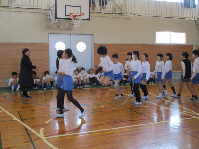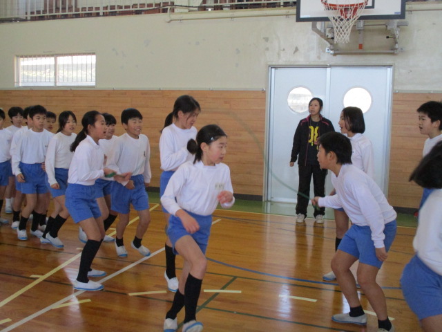 2月8日(月)の昼休みに1・3・5年生の大なわ大会が行われました。