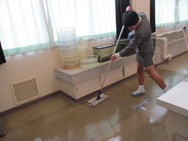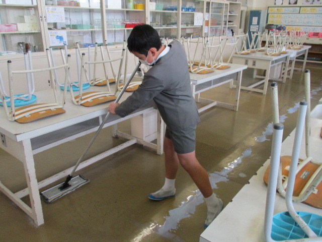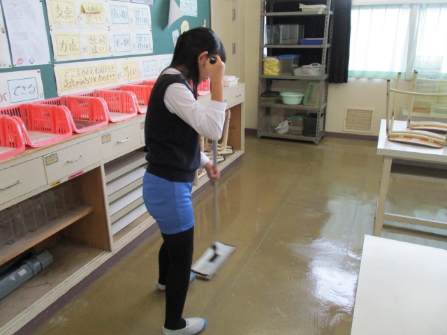 特別教室のワックスがけをしてくれました。まかれたワックスを丁寧