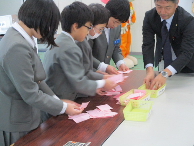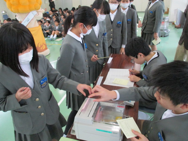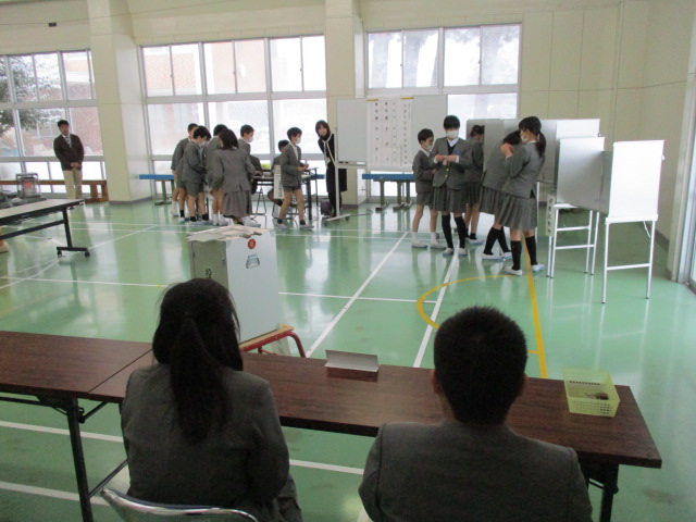 来て頂き、模擬選挙を行いました。社会科の学習で「選挙の大切さ」に
