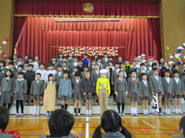 4月から新しく大根布小学校に入学する新1年生を迎えて、ようこそ集会を行いました。