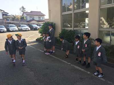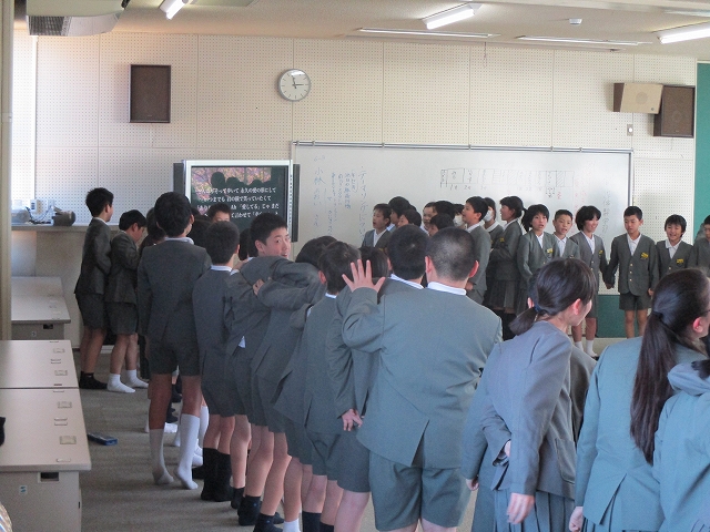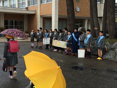 5.6年生が中心であった玄関での朝の挨拶隊に