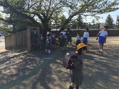 大きい6年生の周りに小さい1年生がたくさん。