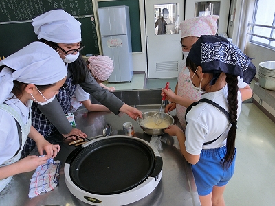 上手に作れて、おいしそうに食べる児童の笑顔があふれていました。