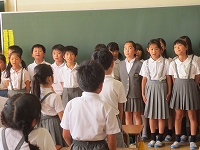 24日(火)の朝学習後、全校がペア学年(1・6年、2・4年、3・5年)で、今月の歌を一緒に歌う「うたでふれあおうの会」を行いました。