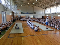 今日は器械運動交歓会に向けての心構えや練習方法についてなどの説明を行いました。