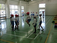 今日行ったのは1・2年生です。1分間の練習の後、3分間の跳んだ回数を測定します。