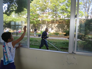 少年野球の代表者の方から、大会出場のため本日は参加できませんので、後日、運動場との草取り等させてくださいとのお電話が事前にありました。本当にありがたいことです。「みんなの大切な大根布小学校」というこのような思いに支えられて学校は運営されています。