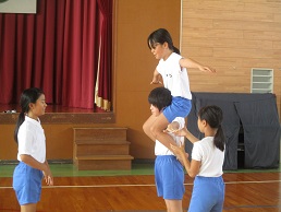 5年生は、運動会に向けて組体操の練習に取り組んでいます。今回は2人技を中心に、互いに声を掛け合うことを大切にしながら練習しました。