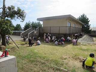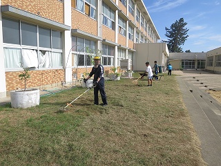 少年野球の代表者の方から、大会出場のため本日は参加できませんので、後日、運動場との草取り等させてくださいとのお電話が事前にありました。本当にありがたいことです。「みんなの大切な大根布小学校」というこのような思いに支えられて学校は運営されています。
