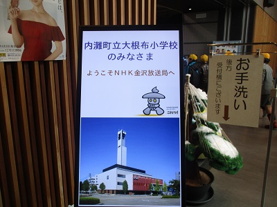テレビ局ならではの設備(写真で分かるように大きな扉に高い脚立など・・・)に、驚きがいっぱいでした。子供たちにとっても貴重な経験になったと思います。NHK金沢放送局の皆様、本当にありがとうございました。