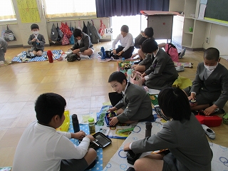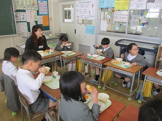 そして各クラスに分かれて、ゲームをし、一緒に給食を食べました。