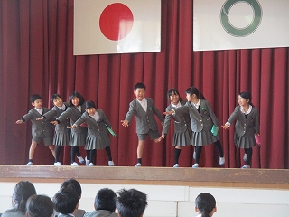 6年生は1~5年生に感謝の気持ちを込めて、ダンスと歌を披露しました。ゆずの「友」を歌い、6年生の絆が伝わるすてきな歌でした。