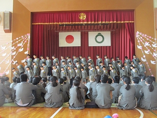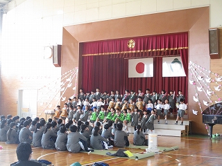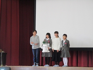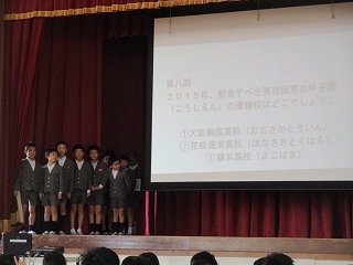 6年生が生まれた12年まえから今年までのニュースを劇とクイズ形式で出題しました。最後には「ひまわりの約束」をすてきな歌声で歌いました。