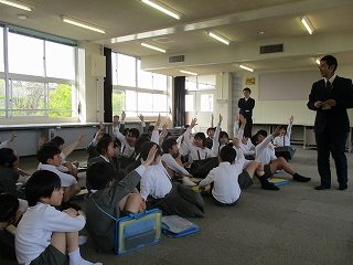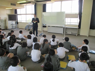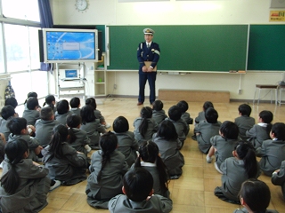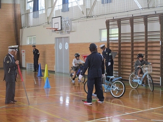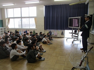 1時間目・2時間目に津幡警察署の警察官が来校し、春の交通安全教室を行っていただきました。