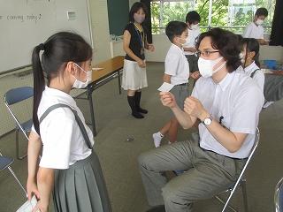今日の英語の授業では、内灘中学校でALTをされているマンギリット・ベンジャミン先生と、内灘町で国際交流員をされているベンジャミン・亮・小河先生をお招きして、名刺交換を行いました。
