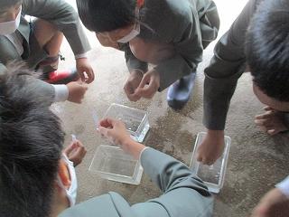 タモを使って、生き物を探しました。ドジョウやザリガニなど、たくさんの生き物を見つけることができました。