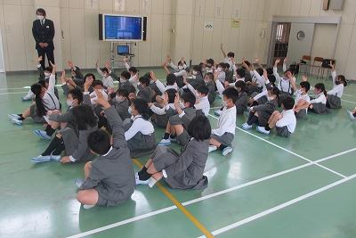 警察の方に来ていただいて、動画を見ながら標識について学んだり、実際の自転車を使って、ブレーキ・ライトなど点検する箇所や自転車の安全な乗り方を教えていただいたりしました。ヘルメットの重要性についてもお話しいただきました。児童は真剣に話をきいていました。学んだことを活かして安全に気を付けてルールを守って自転車に乗ってほしいです。