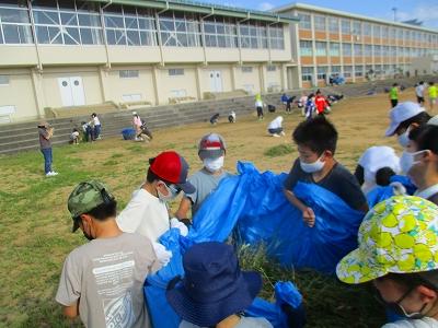 来週の運動会に向けて、校庭の草取りを行いました。