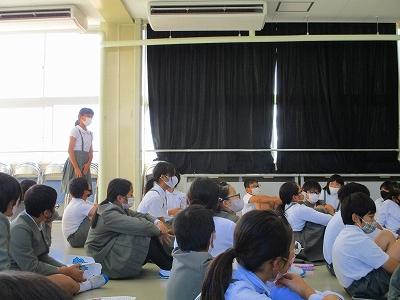 10月15日(金)NPO法人『未来創造うちなだ』の代表 森さん、小泉さんをお招きして「うち・まち」(内灘町の未来を明るく創造しようという奉仕の取り組み)についてお話を伺いました。5年生は、「うちなだ」に対する思いを高め、自分たちにもできることはないかと思いを馳せていました。