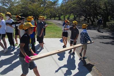 グループの仲間と協力しながら、山の中のコースをまわったり、いかだを作成し、息を合わせてパドルで漕いだり、楽しみながら、いい体験ができました。