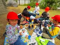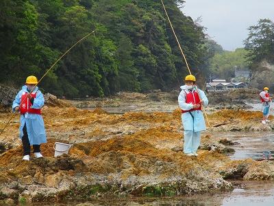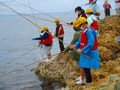 2日目は、魚つりをしました。釣り竿のしかけにえさをつけたり、慣れない岩場を歩いたりしながらがんばっていました。魚が釣れると歓声があがっていました。