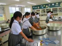一番難しいのは、汁物です。給食の食缶は保温性が高いため、熱々の汁物が入っています。その汁物をお玉で上手にすくってこぼさずに盛り付けることができるようになりました。