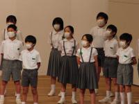 大根布小学校の5年生は、「Sing a rainbow」と「ぼくらの地球」の2曲を合唱で披露しました。1曲目は虹がきれいに描かれている様子を英語で伸びやかに歌いました。2曲目は2部合唱でした。高音部と低音部のハーモニーが心地よく会場中に響き渡っていました。子ども達の視線と心が指揮者の指先に集中し、一体になっている姿は感動的でした。