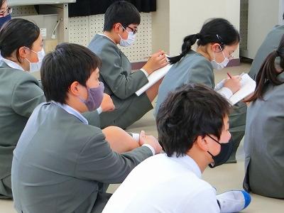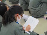 そのあと、松村さんには、実際に、ニュース原稿を読んでいただきました。すらすらと聞き取りやすい声にみんな魅了されていました。終わった瞬間は大きな拍手が起こっていました。その原稿を使って、何人かがアナウンサー体験をしました。松村さんの伝え方のポイントを聞いて、自分なりにどうしたらいいか考えたようで、声のトーンや気持ちを入れること、内容をイメージすること等を心掛けたが難しかったという感想がありました。
