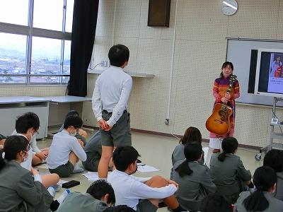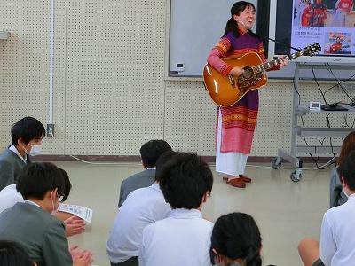 授業の後半では、世界をとりまく環境問題についてもお話ししてくださり、最後にSDGsをわかりやすく紹介した歌を聞かせてくださいました。歌は野吾さんのオリジナルということで、YouTubeでも公開されているそうです。子ども達はリズムに合わせて拍手をしたり、「SDGs」と合いの手を入れたりしながら、和やかな雰囲気で学習を終えることが出来ました。
